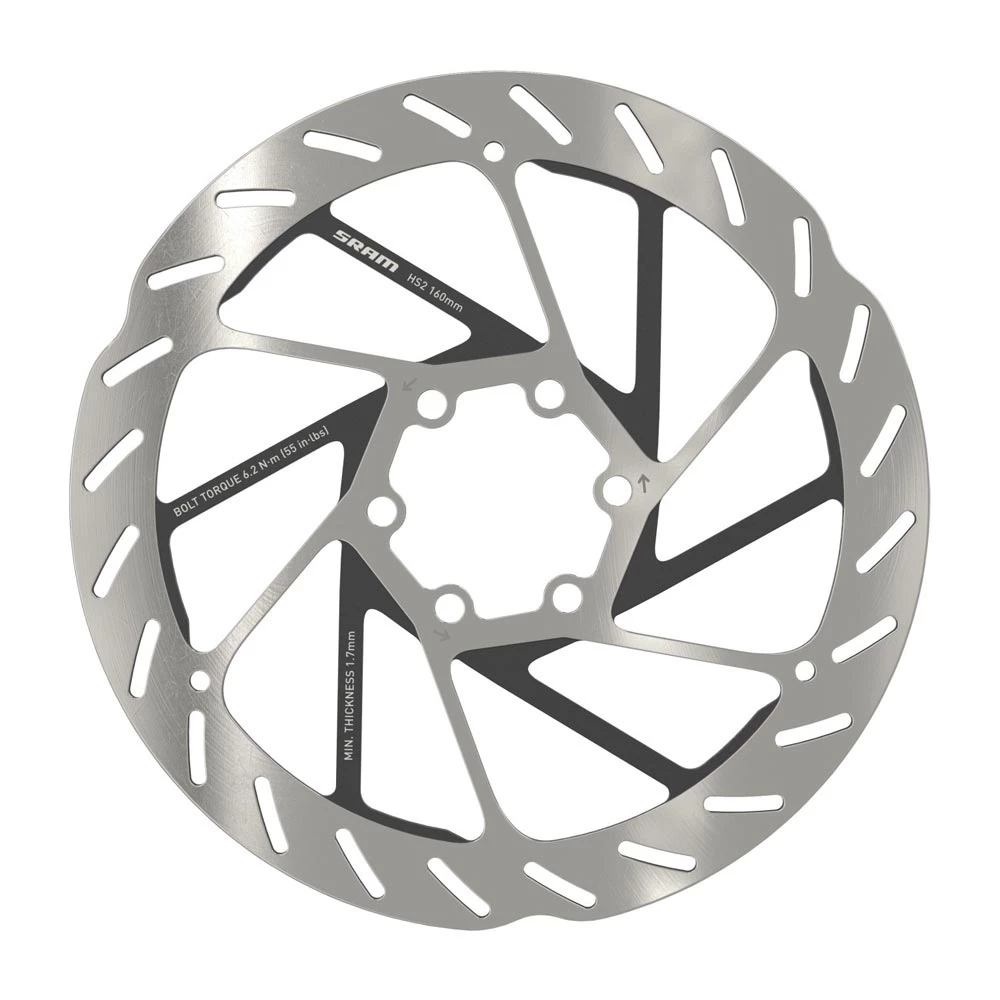 Die Sram HS2 Bremsscheibe speziell fuer den MTB Einsatz mit besserem Waermemanagment und geringer Geraeuschentwicklung. Entwickelt um die Bremsleistung zu verbessern, gleichzeitig die Geraeuschentwicklung zu reduzieren und die Waermeableitung zu optimieren. Ausgestattet mit einem neuen Profil fuer eine bessere Traktion der Bremsbelaege und versenkten Speichen mit waermeableitender Beschichtung, ist die HS2 eine leistungsstaerkere, leisere Bremsscheibe mit dem besten Waermemanagement ihrer Klasse.