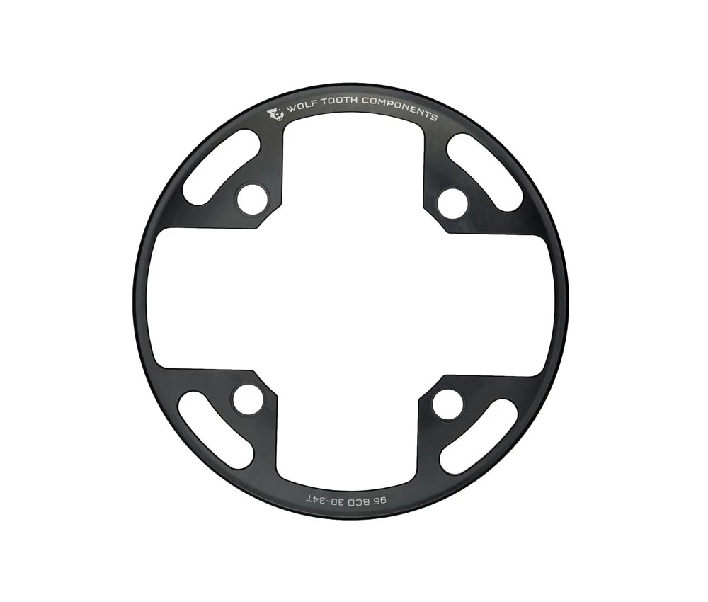 Der Wolf Tooth Kettenschutzring fuer 1-fach Kettenblaetter mit 104mm Lochkreis und 32-34 Zaehnen. Gefertigt aus hochfestem 7075 T6 Aluminium ist er nicht nur leicht, sondern es lassen sich auch 1, 2 oder 3-fach Kurbeln nachzuruesten um die Kettenblaetter vor Schmutz zu schuetzen.